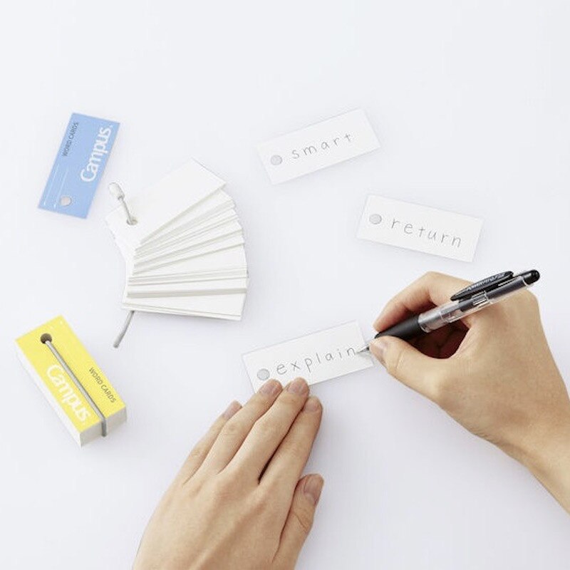 These compact word cards are perfect for using as portable flashcards, taking notes on the go, or even drawing mini sketches! The cards are made of high-quality drawing paper and are bound with a flexible elastic ring. The ring can be easily opened and closed, letting you remove and rearrange the cards whenever you want. The ring also stretches around the word cards to keep them securely bound when not in use.